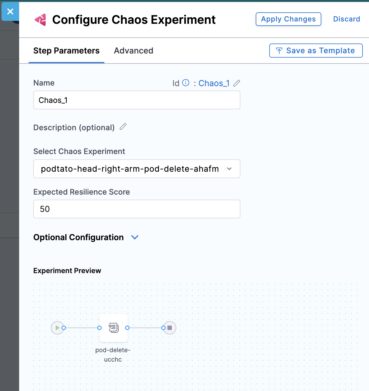 - Click Save to save the experiment to the Chaos Experiments page. You can add it to a ChaosHub later.