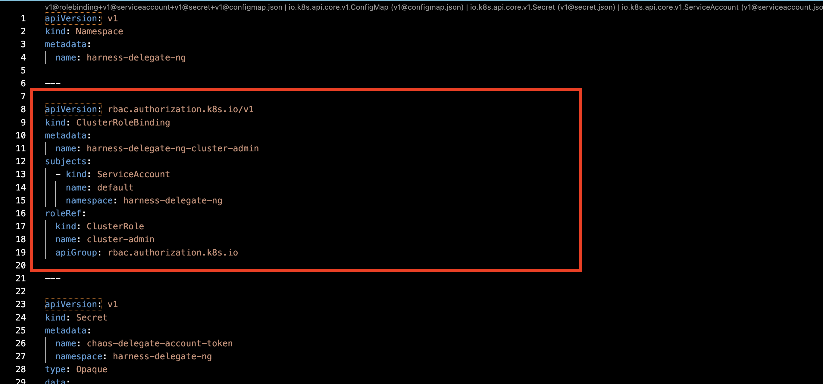 By default, Delegate uses the cluster admin role. To limit the permissions for the Delegate, follow the steps below.