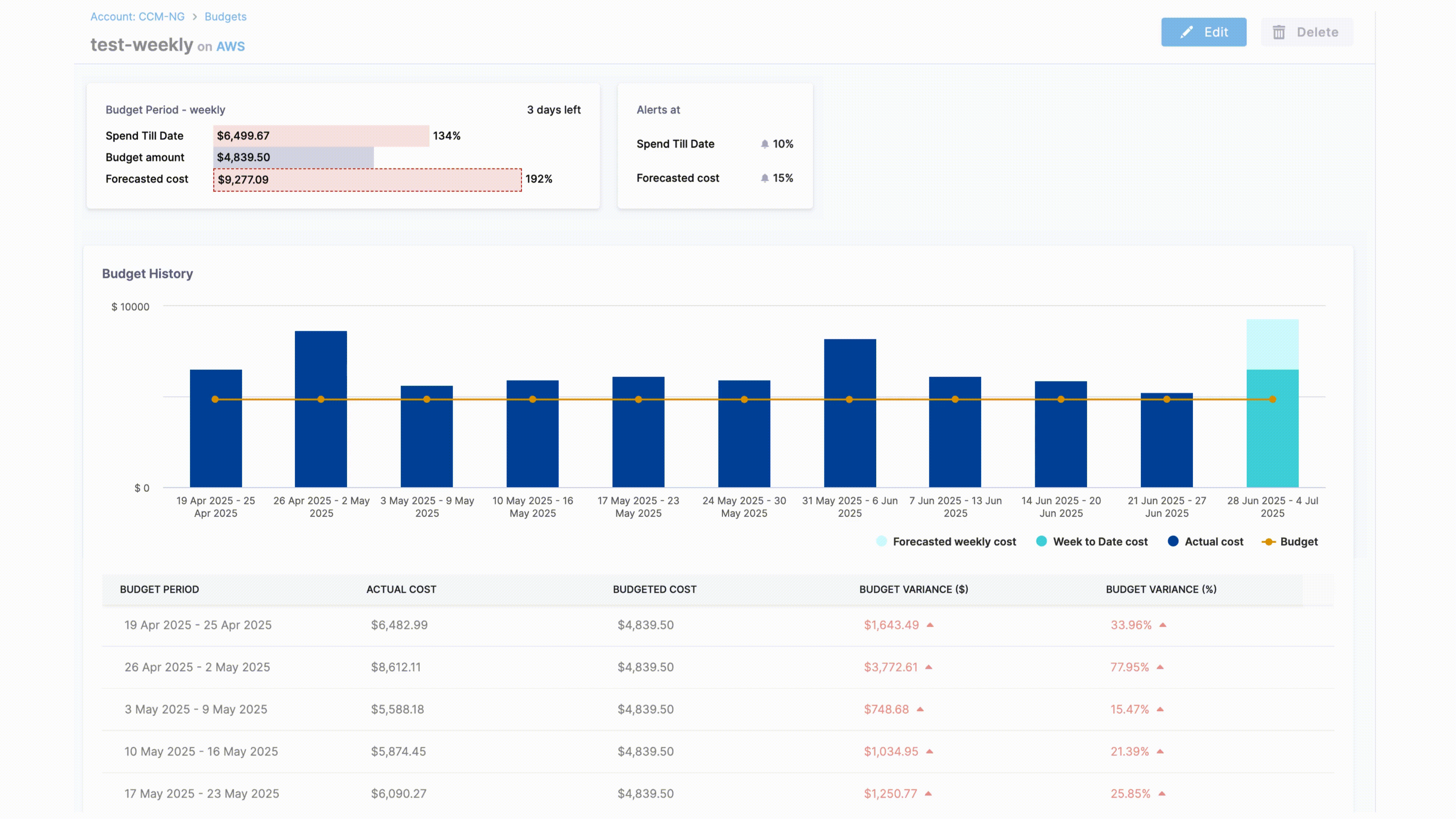 • Actual Cost: Real-time comparison of spending against your budget limit
