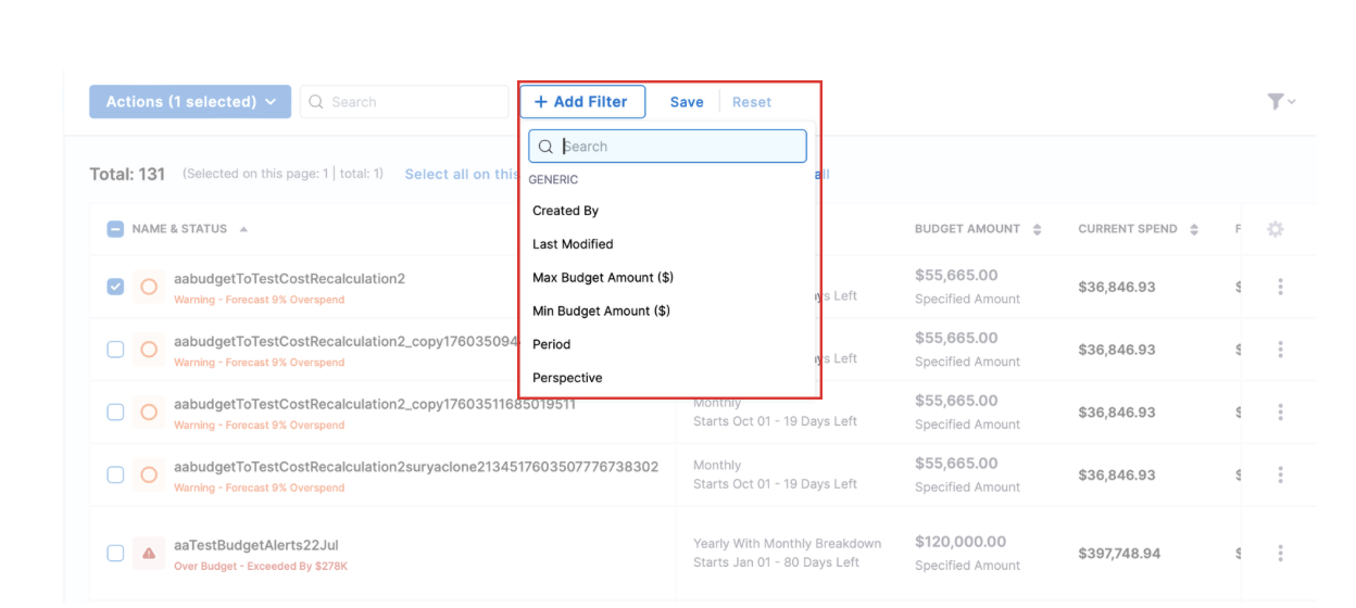 • Bulk Budget Management: Select multiple budgets to perform batch operations:
