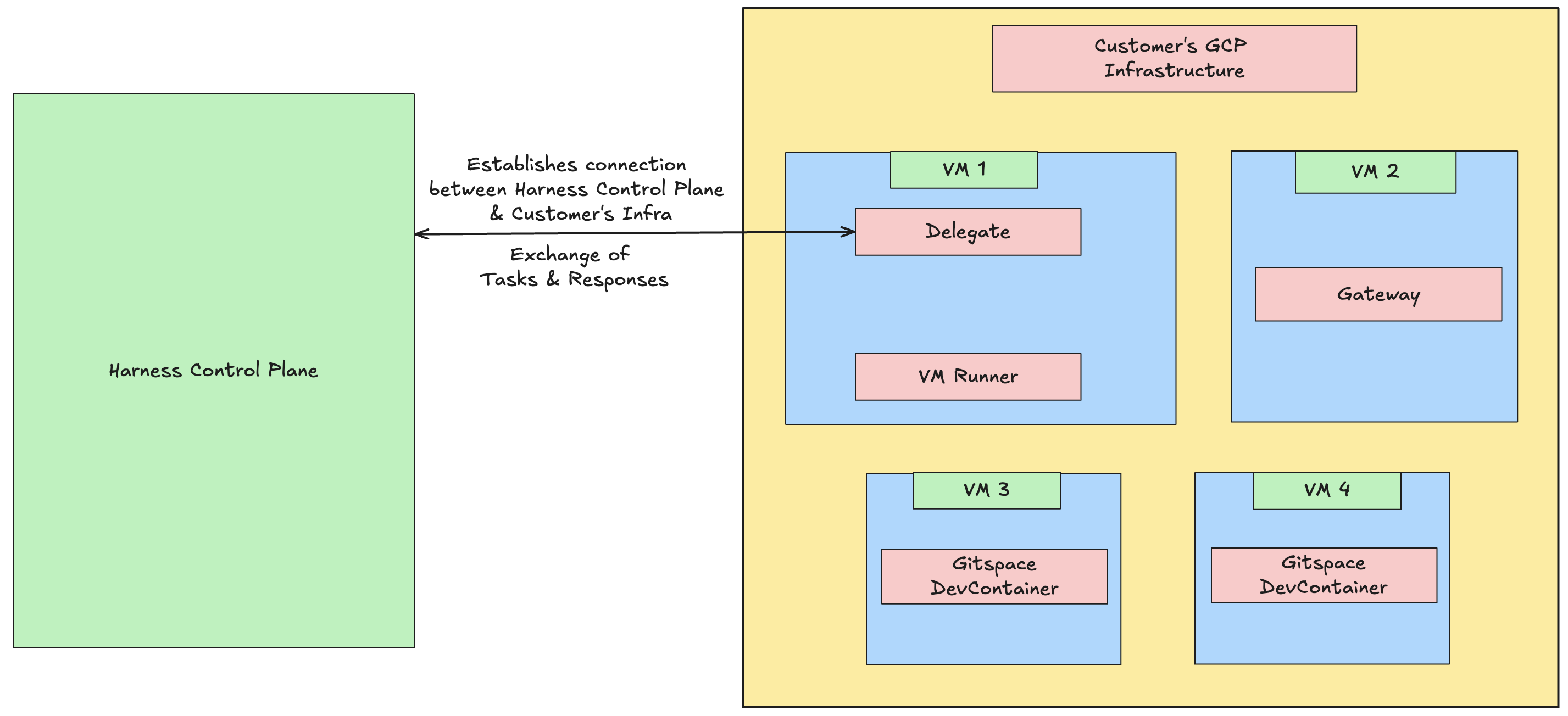 | VM1 | Hosts the Harness Delegate and VM Runner |