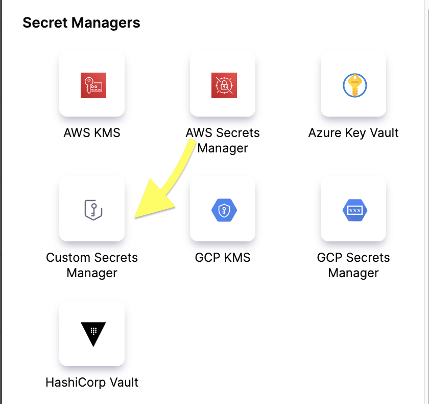 2. Select New Connector, and then select Custom Secrets Manager under Secrets Managers.