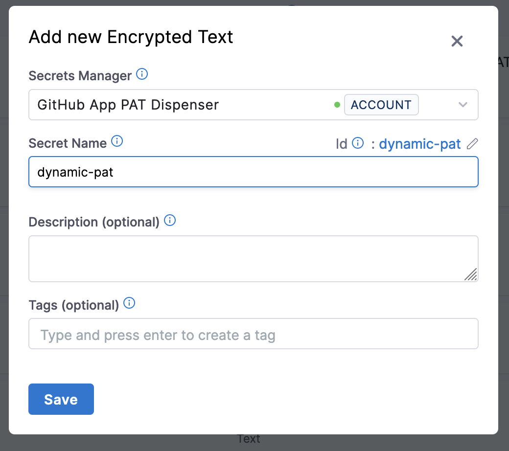 4. For Secret Name, enter dynamic-pat or another recognizable name, and then select Save.