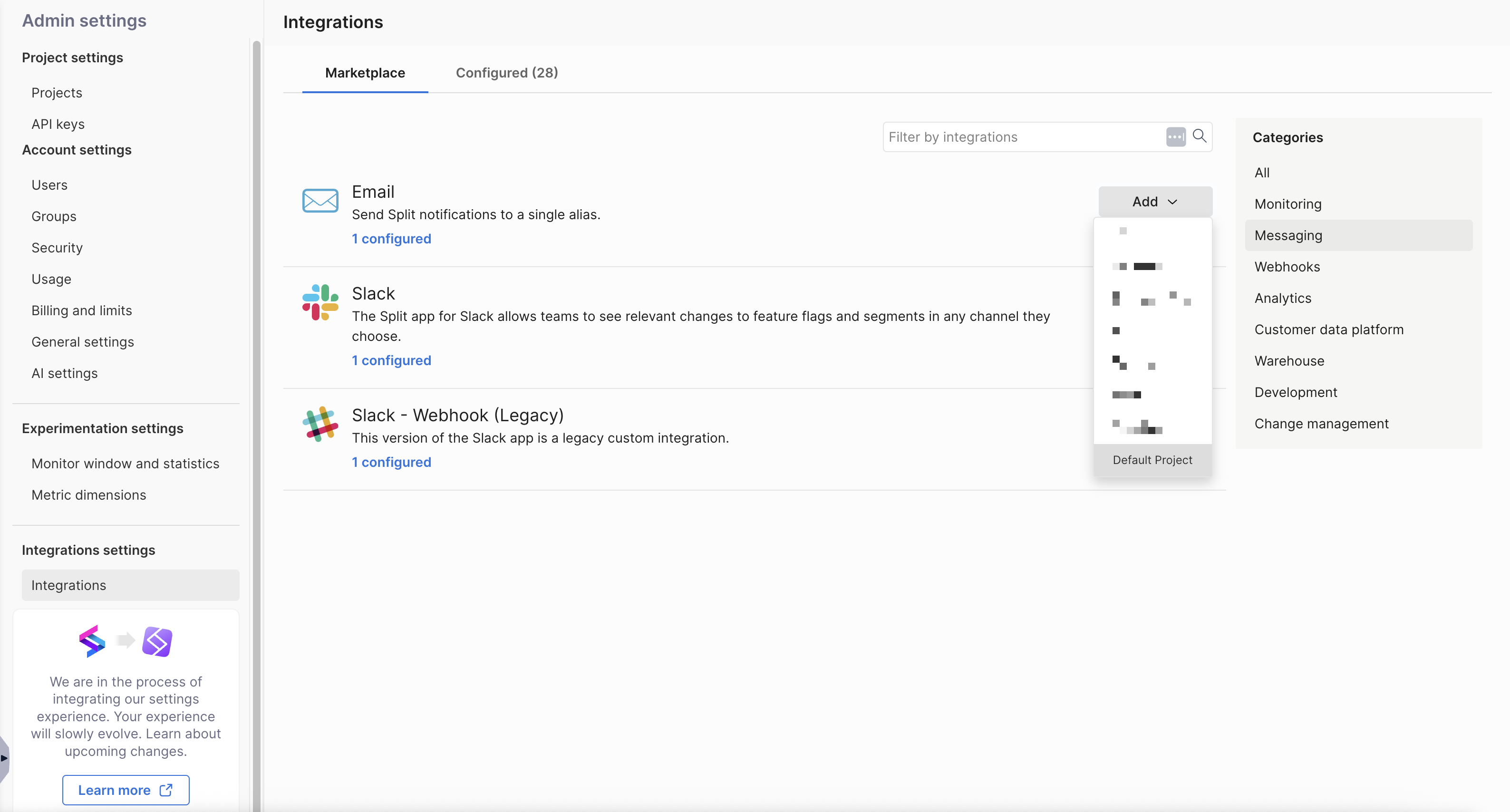 Click the Add dropdown menu and select a project where you want this integration to apply to (for example,