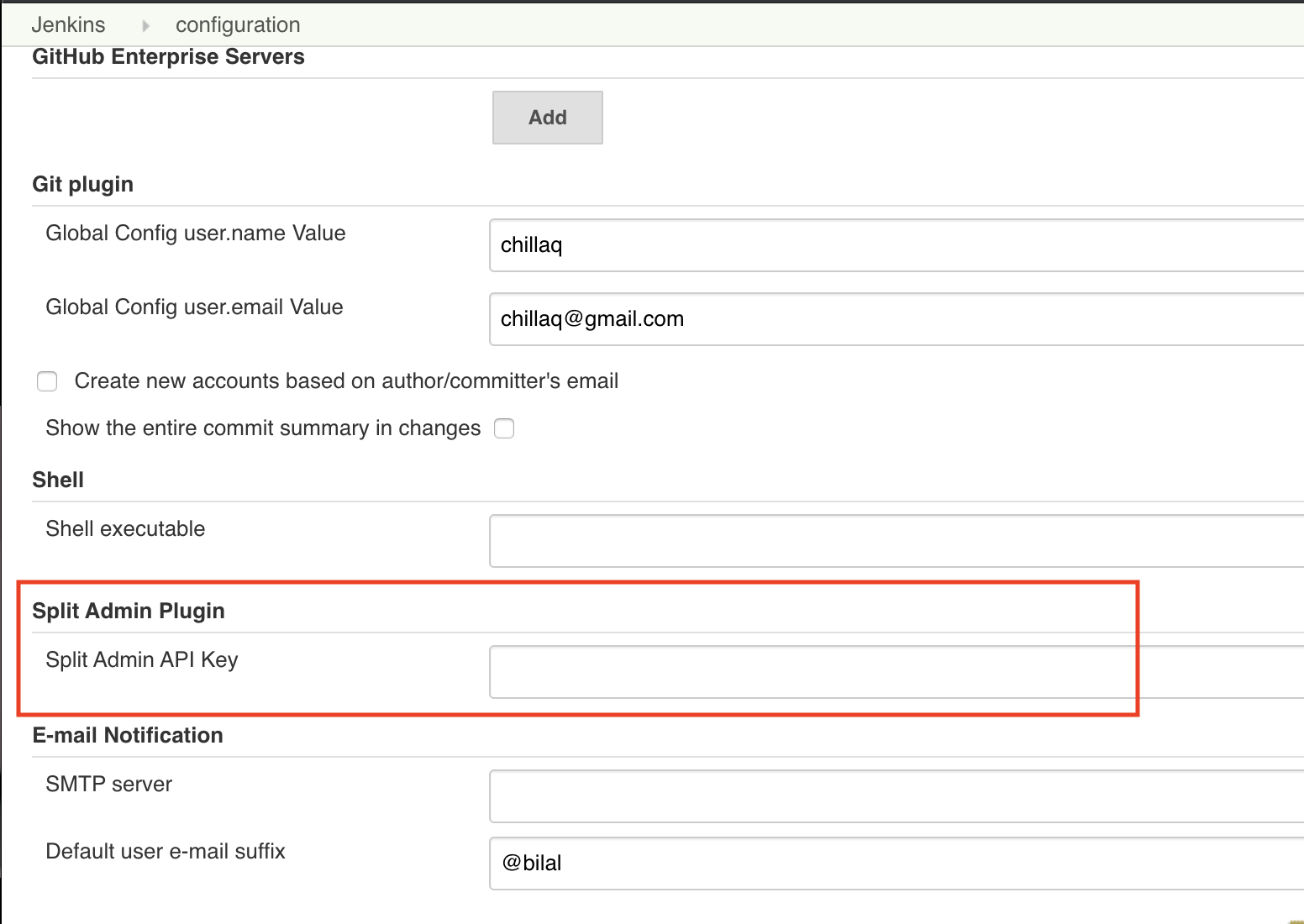 1. Store the Harness FME Admin API Key in Split Admin API Key edit box found in Manage Jenkins-> Configure System page.