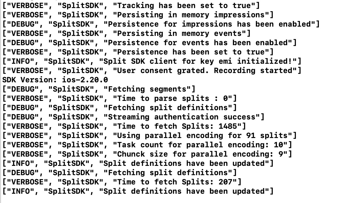 sdkReadyFromCache. This event fires once the SDK is ready to evaluate treatments using a locally cached version of your rollout plan from a previous session (which might be stale). If there is data in the cache, this event fires almost immediately, since access to the cache is fast; otherwise, it doesn't fire.sdkReady. This event fires once the SDK is ready to evaluate treatments using the most up-to-date version of your rollout plan, downloaded from Harness servers.sdkReadyTimedOut. This event fires if there is no cached version of your rollout plan in disk cache, and the SDK could not fully download the data from Harness servers within the time specified by thesdkReadyTimeOutproperty of theSplitClientConfigobject. This event does not indicate that the SDK initialization was interrupted. The SDK continues downloading the rollout plan and fires thesdkReadyevent when finished. This delayedsdkReadyevent may happen with slow connections or large rollout plans with many feature flags, segments, or dynamic configurations.sdkUpdated. This event fires whenever your rollout plan is changed. Listen for this event to refresh your app whenever a feature flag or segment is changed in Harness FME.