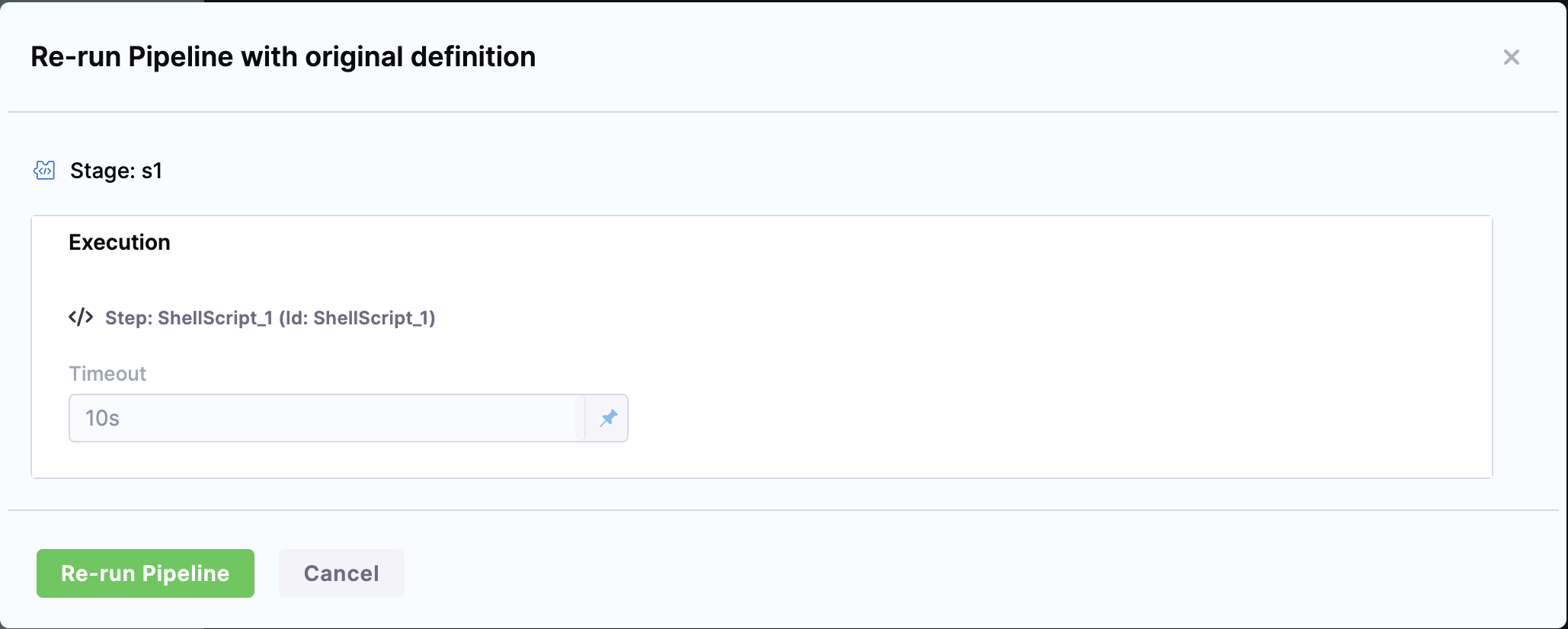 Harness now allows you to rerun a pipeline using the exact same pipeline definition (YAML) and input variables used during the original execution.