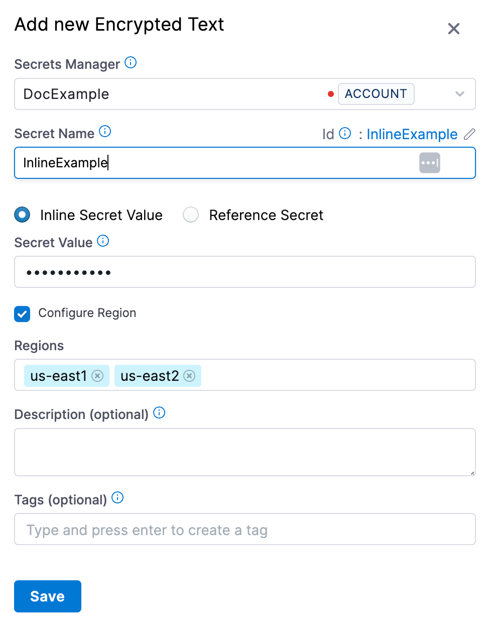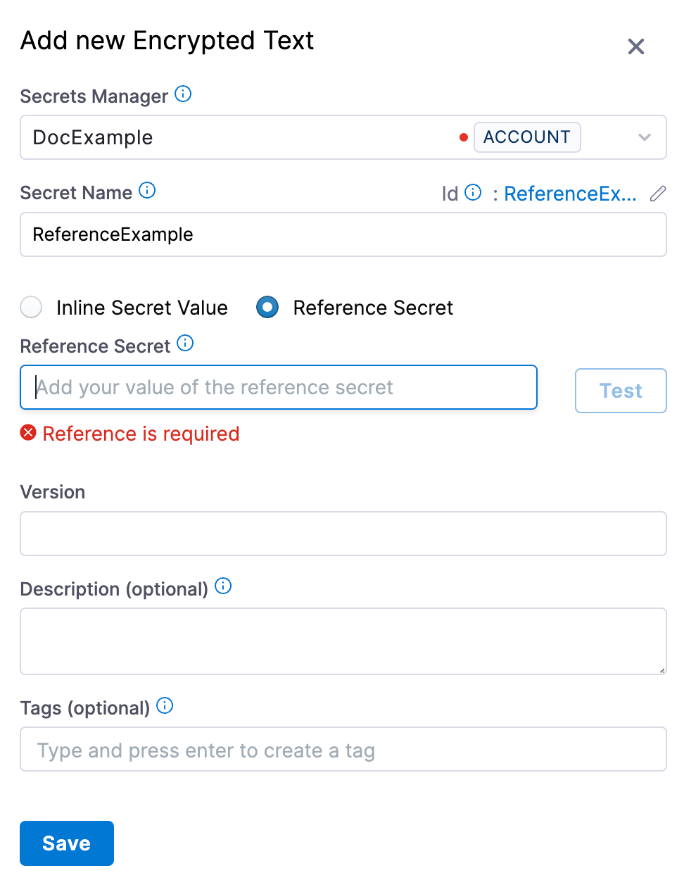- You can choose to update the Id or let it be the same as your secret manager's name. For more information, go to Entity Identifier Reference.
