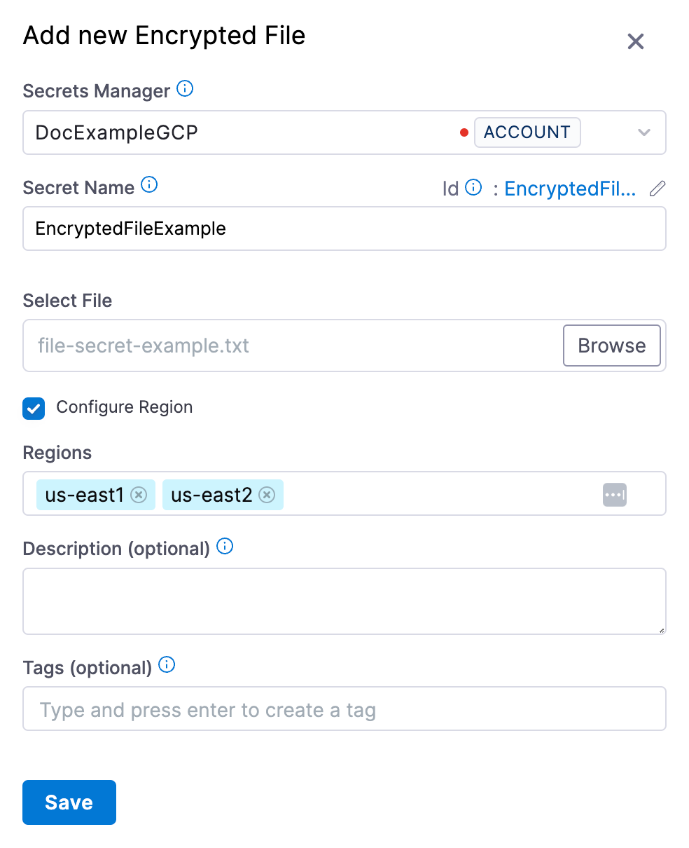 Select New Secret and then select File. The Add new Encrypted File settings appear.