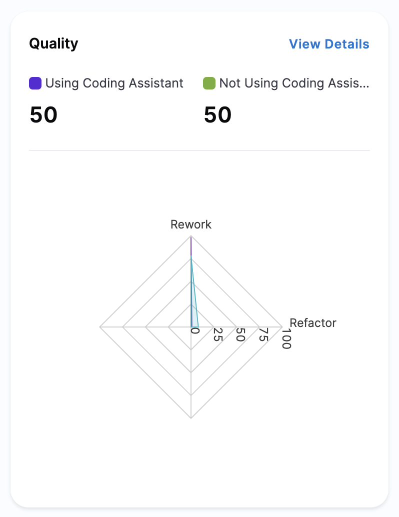 Clicking View Details provides a deeper analysis of how individual metrics influence the overall Quality score. Engineering teams can: